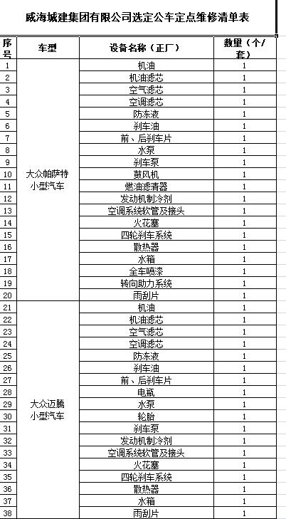 (4)采購(gòu)內(nèi)容:威海城建集團(tuán)10輛公車定點(diǎn)維修保養(yǎng)等服務(wù)內(nèi)容,采購(gòu)清單詳見(jiàn)附件。